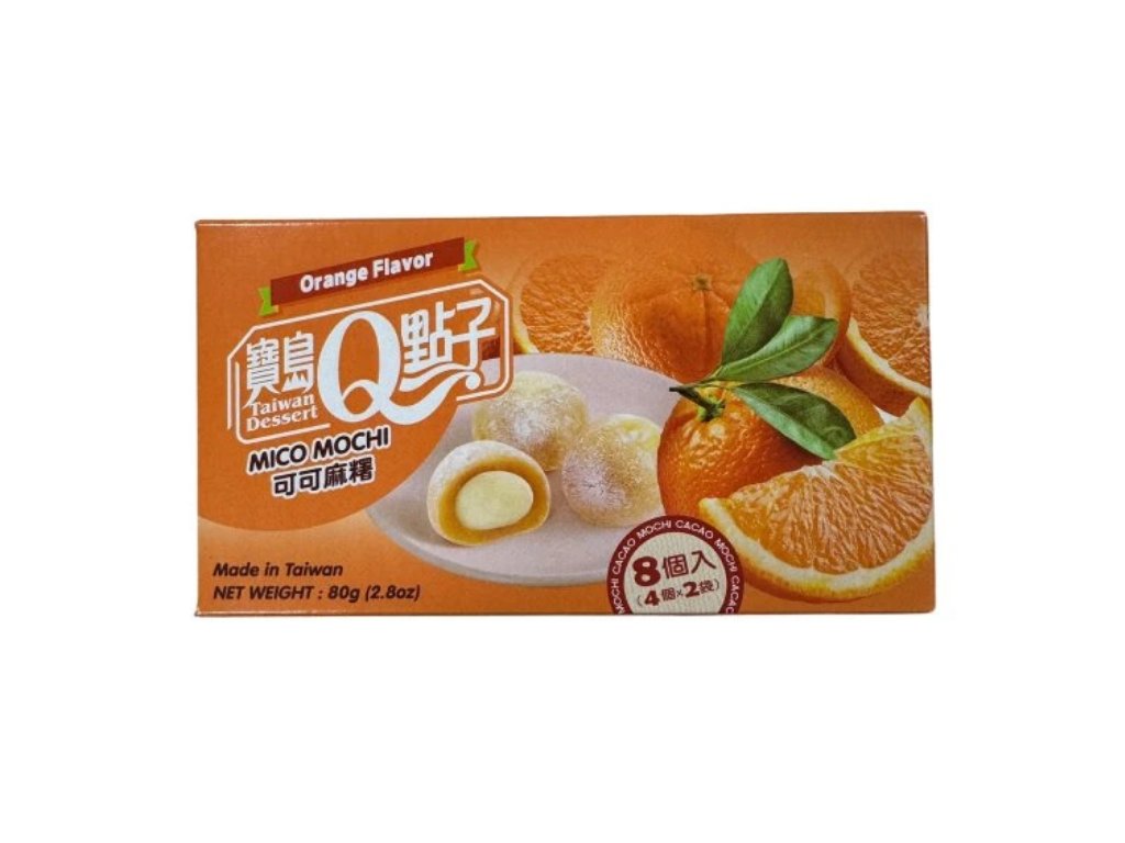 Odkryj magię azjatyckich słodyczy z Q Mochi Orange . Te delikatne ciastka z mąki ryżowej kleistej mają unikalną konsystencję „mochi-mochi” – są miękkie, sprężyste i lekko ciągnące. Wewnątrz każdego ciastka znajduje się orzeźwiające owocowe nadzienie o soczystym smaku pomarańczy, które zachwyci miłośników niekonwencjonalnych deserów.