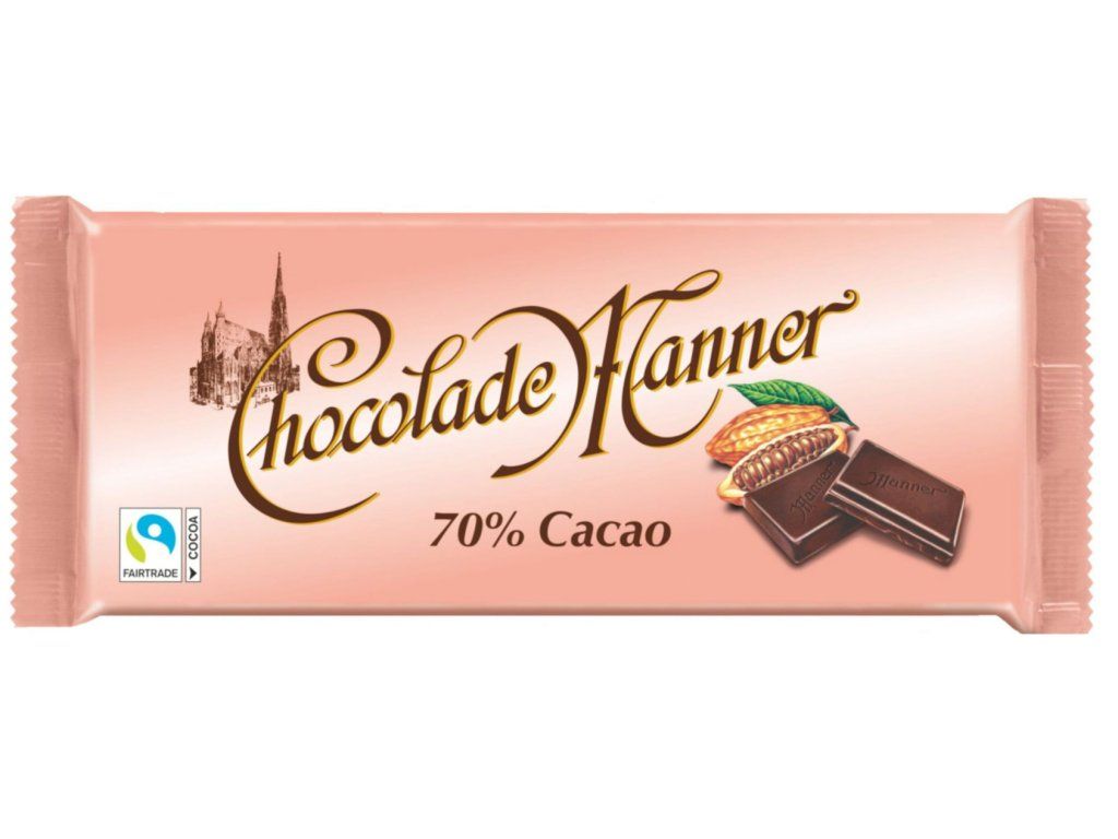 Czekolada Manner 70% to prawdziwa gorzka czekolada według oryginalnej receptury Josefa Mannera I z 1895 roku. Miazga kakaowa, cukier, masło kakaowe, wanilia i nic więcej. Dzięki wyjątkowo wysokiej zawartości kakao i prawdziwej wanilii wynoszącej 70% ta specjalność Manner oferuje niezwykłe doznania smakowe. Nieporównywalnie miękka, rozpływająca się masa powstaje w wyniku starannego „konszowania”. Podczas degustacji w ciemno w „Klubie Miłośników Czekolady” czekolada Manner zajęła drugie miejsce wśród 16 prawdziwych czekolad.