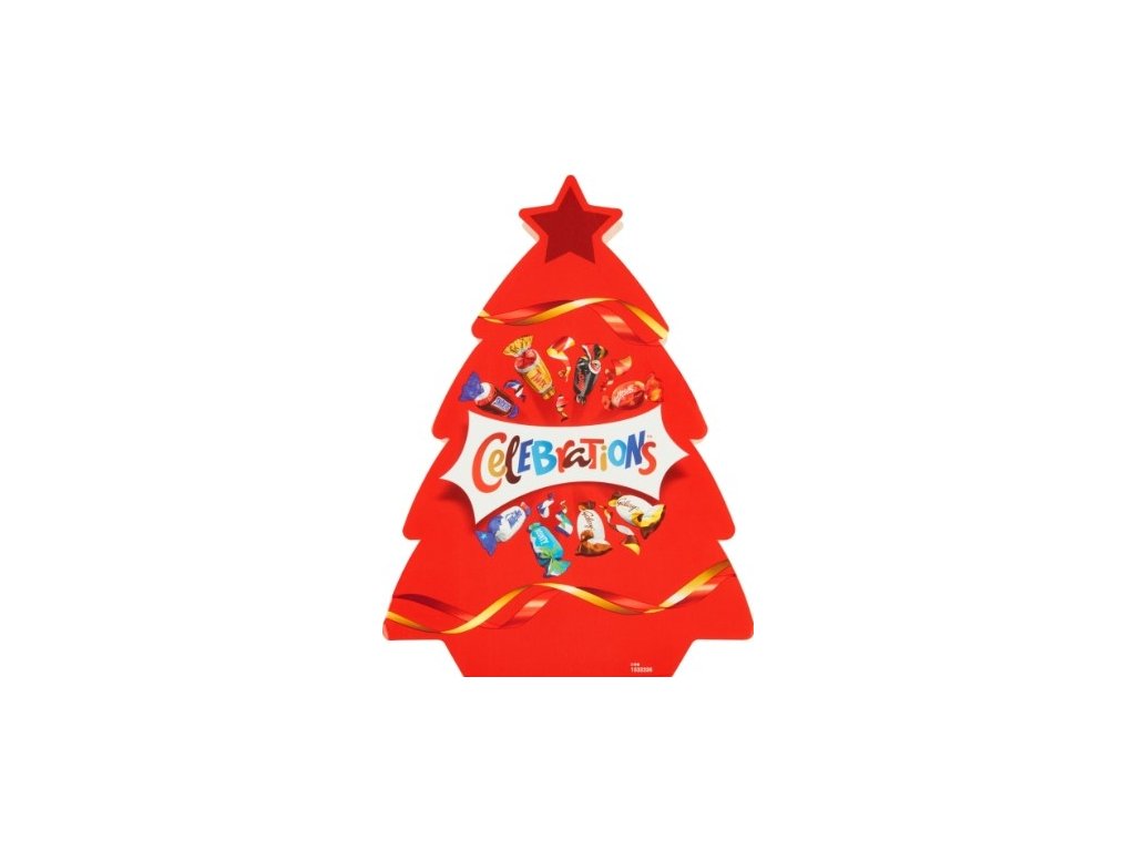 Pudełko na cukierki Celebrations w kształcie czerwonego drzewka.