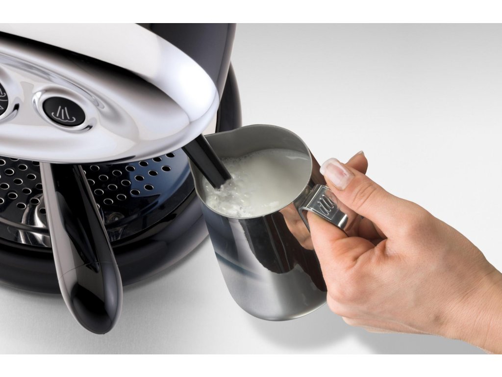 Nie wyobrażasz sobie popołudniowej kawy bez delikatnej mlecznej pianki ? Ten ekspres do kawy umożliwia przygotowanie np. pysznego cappuccino , dysza parowa ubija ilość mleka wystarczającą na jedną lub dwie filiżanki . Wystarczy wlać zimne mleko do odpowiedniego pojemnika, najlepiej do czajnika ze stali nierdzewnej i zanurzyć w mleku dyszę parową. Naciśnij przycisk pary i poczekaj, aż mleko zostanie ubite do pożądanego rezultatu. Następnie dyszę pary należy dokładnie oczyścić z resztek mleka.