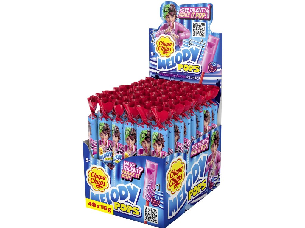 Lizaki Chupa Chups Melody Pops Truskawkowe w kartonie 48 x 15 g