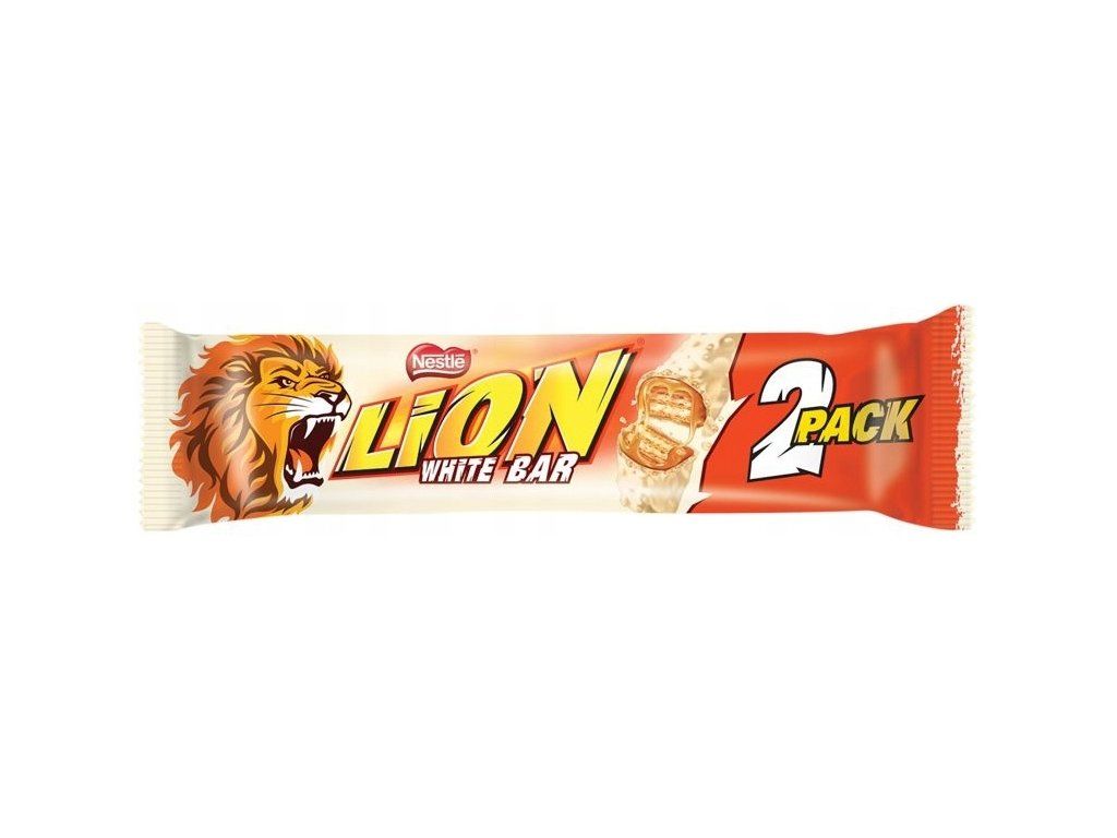Pyszny, chrupiący wafel z karmelem, posypany chipsami i pokryty delikatną białą polewą.
