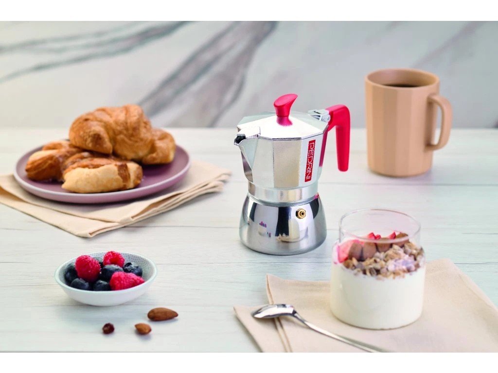 Pedrini Aroma Induction je moderní indukční moka konvička, která spojuje tradiční italskou kvalitu s inovativními technologiemi. Je vyrobena z potravinářského hliníku a nerezové oceli INOX 18/10, přičemž vnitřní hliníková vrstva zajišťuje sběr patiny, která přispívá k bohaté chuti kávy. Vnější nerezová vrstva je určena pro indukční kompatibilitu, což zajišťuje univerzálnost na různých typech sporáků. Konvička je vybavena žáruvzdornou rukojetí a silikonovým těsněním, které garantují dlouhou životnost a bezpečné používání. O bezpečnost při přípravě kávy se také stará spolehlivý bezpečnostní ventil, který chrání před přetlakem.