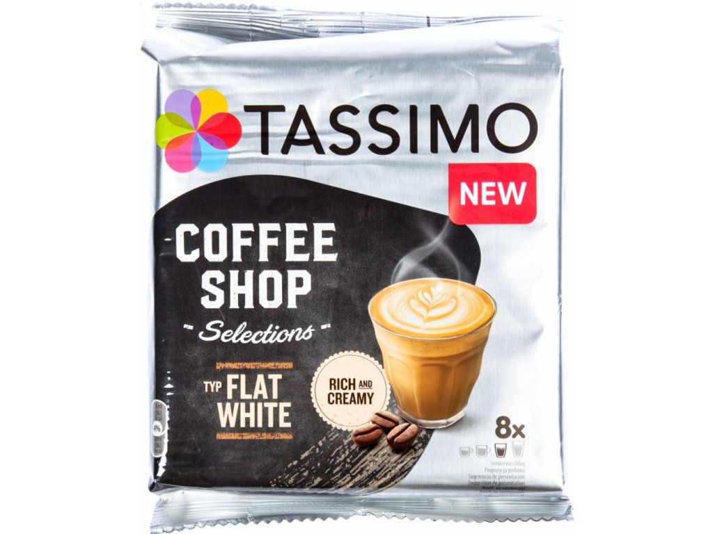 Podobał ci się napój pochodzący z Australii o nazwie Flat White? Idealna równowaga kawy i mleka sprawia, że napój Flat White jest mocny, pełen smaku i jednocześnie kremowo-gładki. Dzięki kapsułkom Tassimo Flat White stworzysz filiżankę napoju, który nie zawiera tak dużo mleka jak caffe latte i jednocześnie nie za dużo kawy. W opakowaniu 220 g znajduje się 8 kapsułek z mlekiem i 8 kapsułek z kawą. Kapsułki te przywołują mocny i bogaty smak kawy uzupełniony kremowym, łagodnym smakiem mleka.